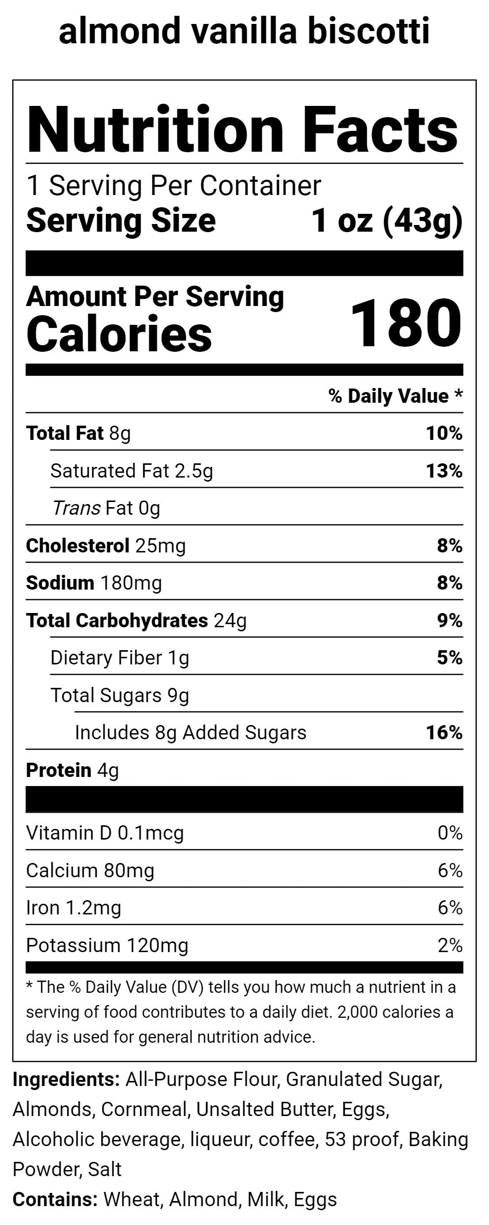 Indulge in the timeless delight of Almond Vanilla Biscotti, a classic Italian treat that will transport you back to your grandmother's kitchen. Not so simply made with natural sliced almonds, real vanilla paste and vanilla liqueurs, we hand roll and hand cut like grandma would have done. We bake our biscotti to achieve just the right amount of crispness so our fans realize they can enjoy an authentic traditional biscotti without breaking their teeth.