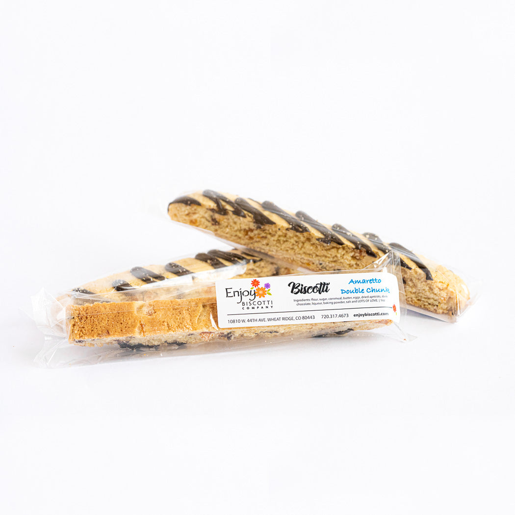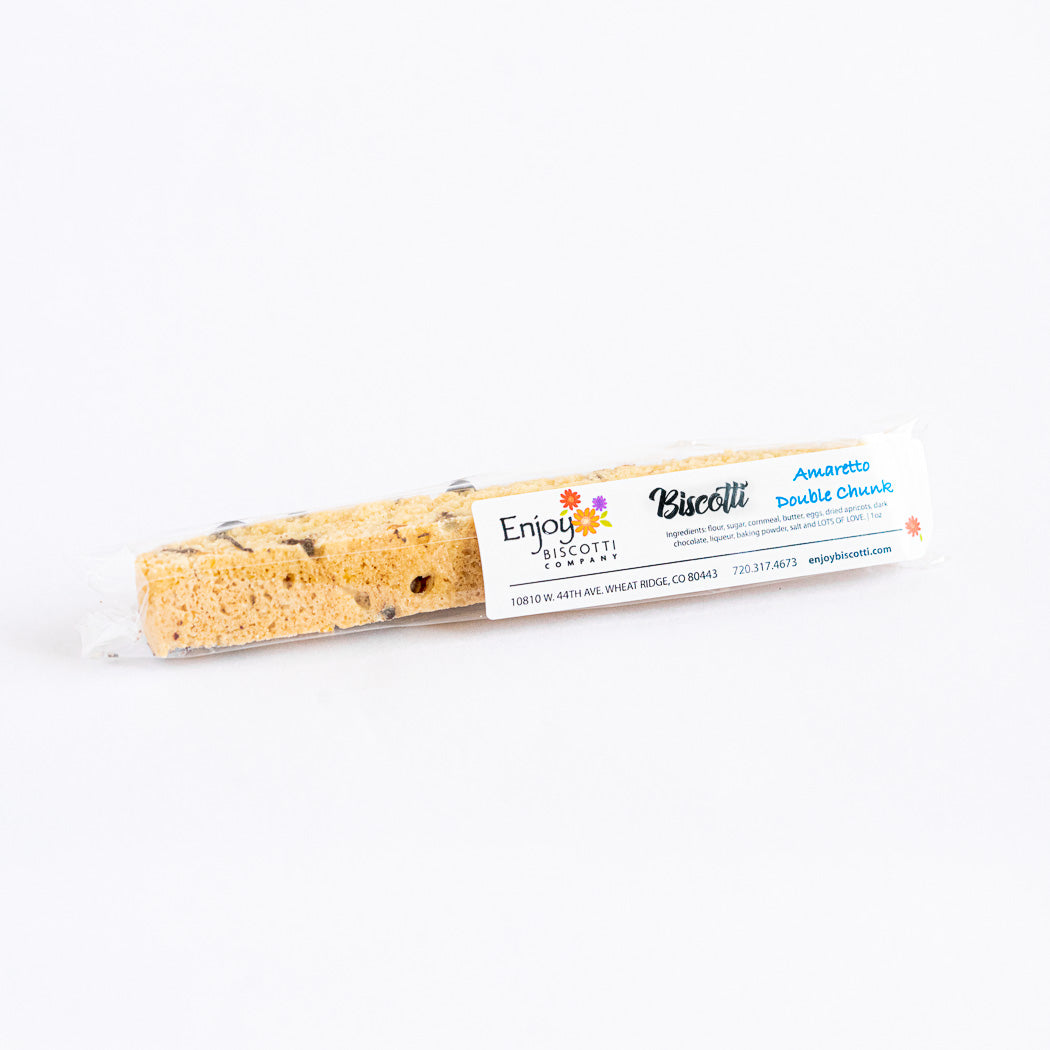 Amaretto is an almond liqueur that is often made from the seed of an apricot. When we created this biscotti, we paired Amaretto liqueur with diced sweet apricots and dark chocolate chunks. The result . . . pure decadence!!