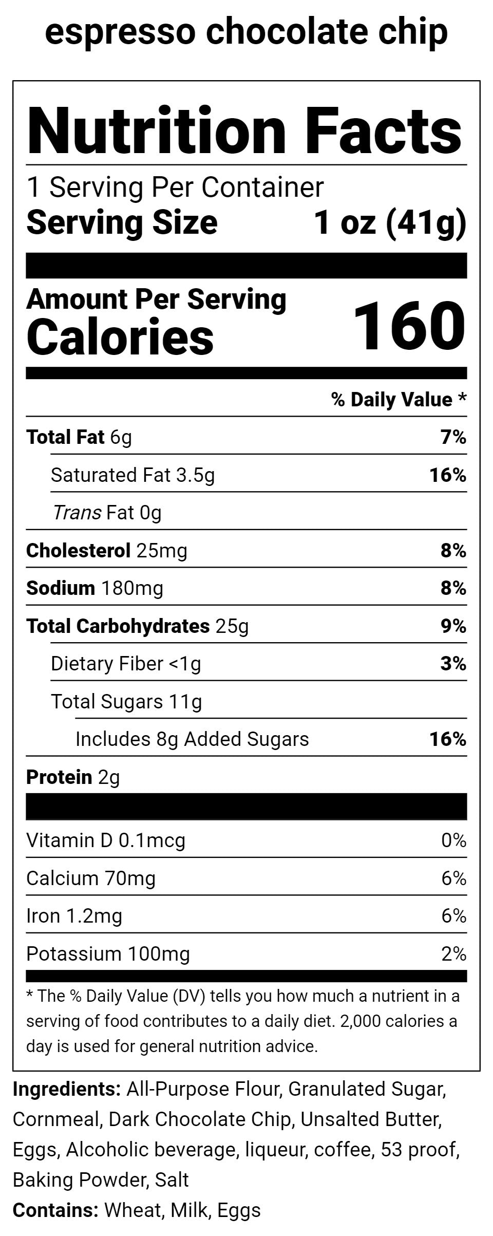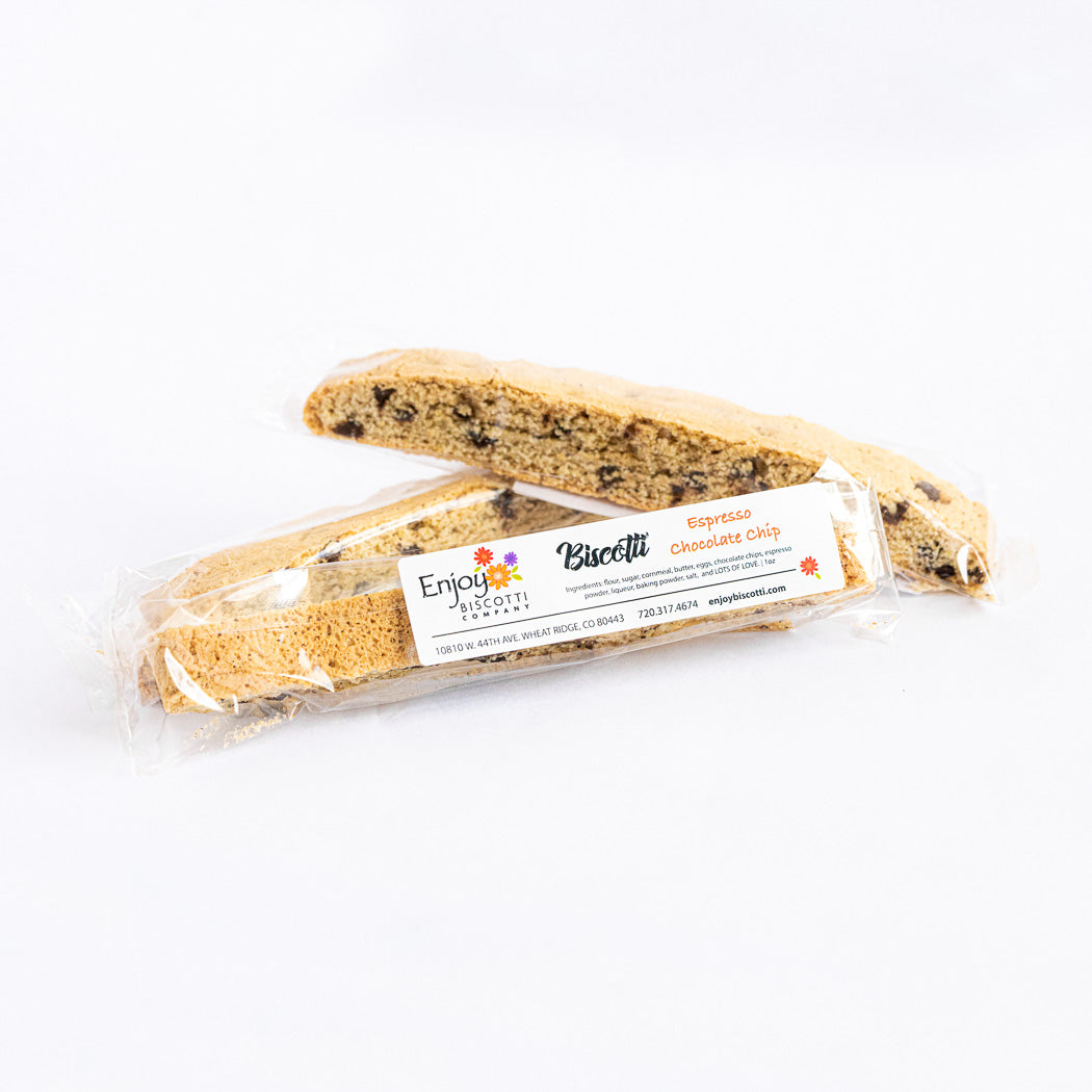 A coffee shop favorite, our Espresso Chocolate Chip biscotti are handmade with rich chocolate chips, espresso beans and Kahlua coffee liqueur. And, you thought you were a coffee lover - just add an Espresso Biscotti !!
